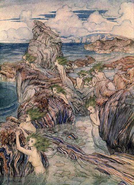 | "The water Nymphs, that in the bottom plaid, held up their pearled wrists and took her in." |