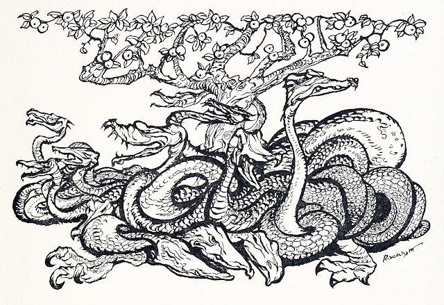 | "All amidst the Gardens fair of Hesperus, and his daughters three that sing about the golden tree." |