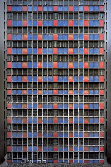 Upon closer inspection of each photograph, the anonymous public face of the city is full of rewarding detail- suddenly public space is private space, and large swatches of colour give way to smaller pieces of people's lives. The trappings of the people are still visible here: their days inform the detail of these buildings. Bits of laundry and hanging plants pepper the tiny rectangles of windows - the only