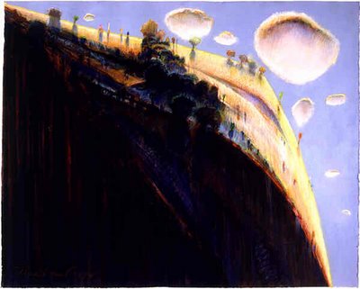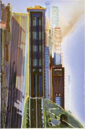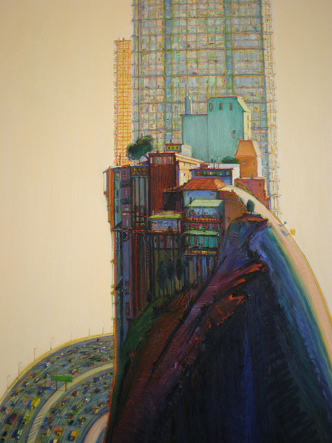 In the last of three postings on the paintings of Wayne Thiebaud (cakes, landscapes, and cityscapes) I'm taking a look at some of his cityscapes. Based on San Francisco with its dramatic hills where the roads rise and fall quite precipitously in places, they're a fanciful and exaggerated version of the reality.