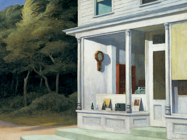 His paintings combine apparently incompatible qualities. Modern in their bleakness and simplicity, they are also full of nostalgia for the puritan virtues of the American past - the kind of quirky nineteenth-century architecture Hopper liked to paint, for instance, could not have been more out of fashion than it was in the mid 1920s, when he first began to look at it seriously.