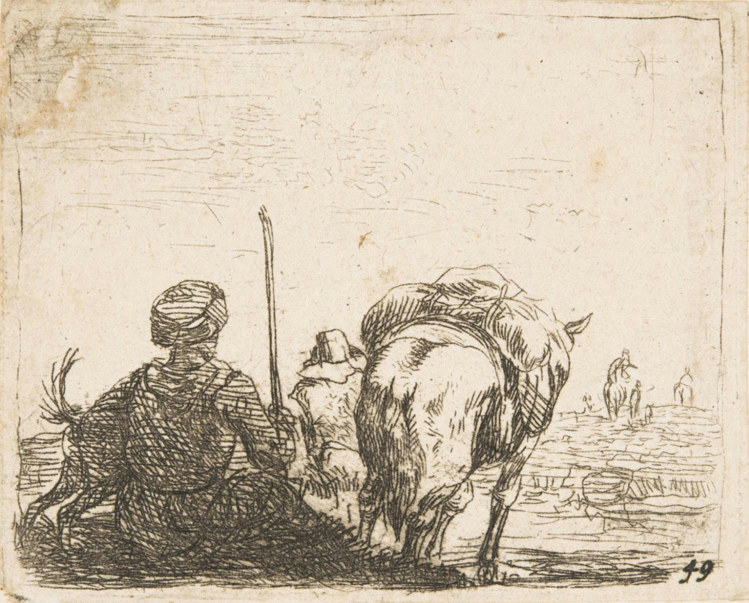 c1652-60 A Woman with a Dog, Sitting on the Ground behind a Pack Horse