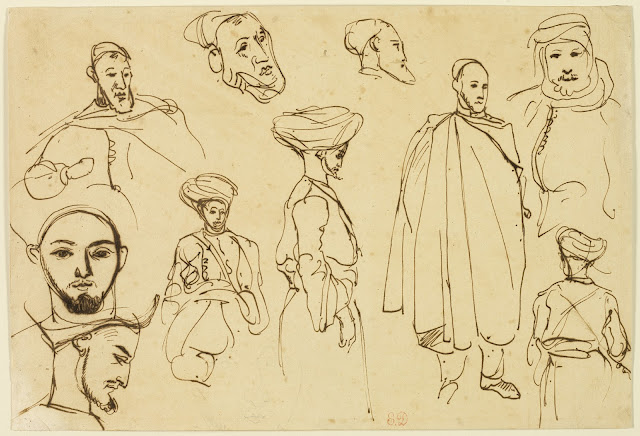 | c1832 Sketches of Algerian men pen and brown ink, with traces of graphite, on tan wove paper 20.5 x 30.2 cm Art Institute of Chicago, IL |