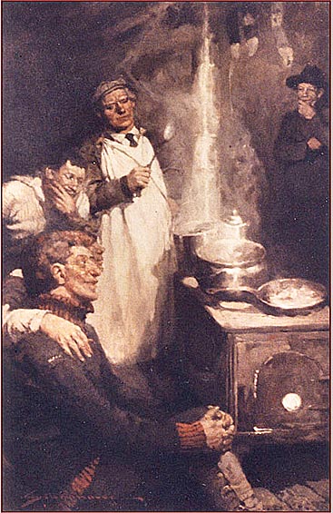 | 1915 "The bullet went smashing through the violin case and into the fiddler’s shoulder" from “The Fiddler of Glory Hole.” Collier’s Weekly, 4 December 1915 oil on canvas 60.9 x 93.9 cm |