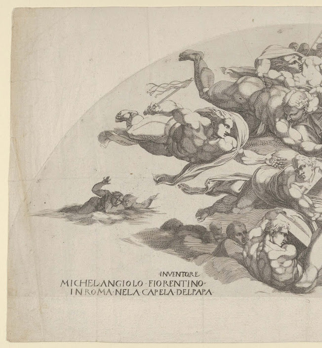 | n.d. Group from Last Judgment, St. Bartholomew, St. Peter, and other Apostles engraving by Domenico del Barbiere (Italy) 37.5 x 22.5 cm (sheet) The Metropolitan Museum of Art, New York |