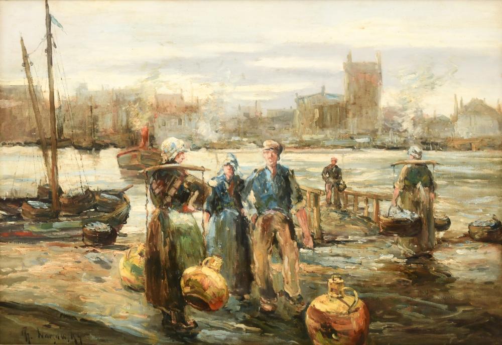 oil on canvas 54.6 x 45.7 cmOcean Bay, inlet with boats