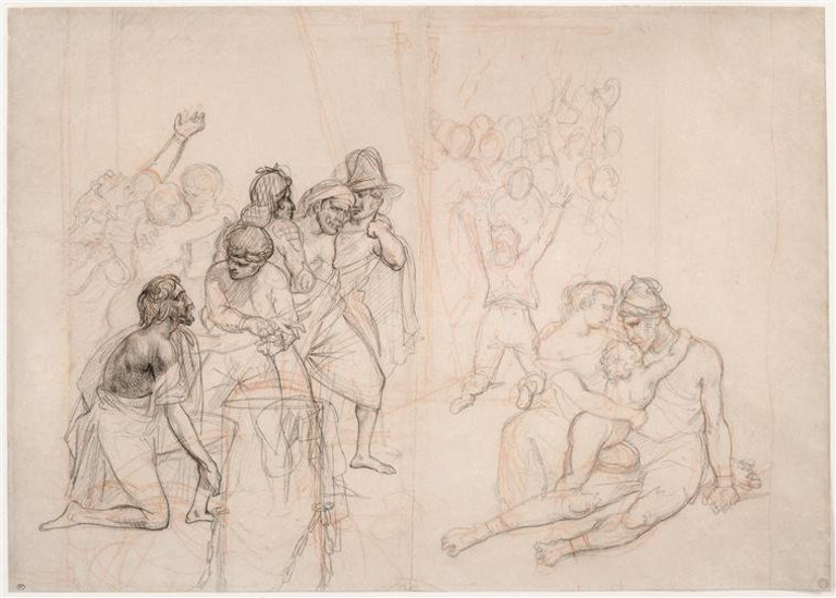 | 1823 Study of soldiers fighting civilians graphite on paper 20.5 x 28 cm The British Museum, London |