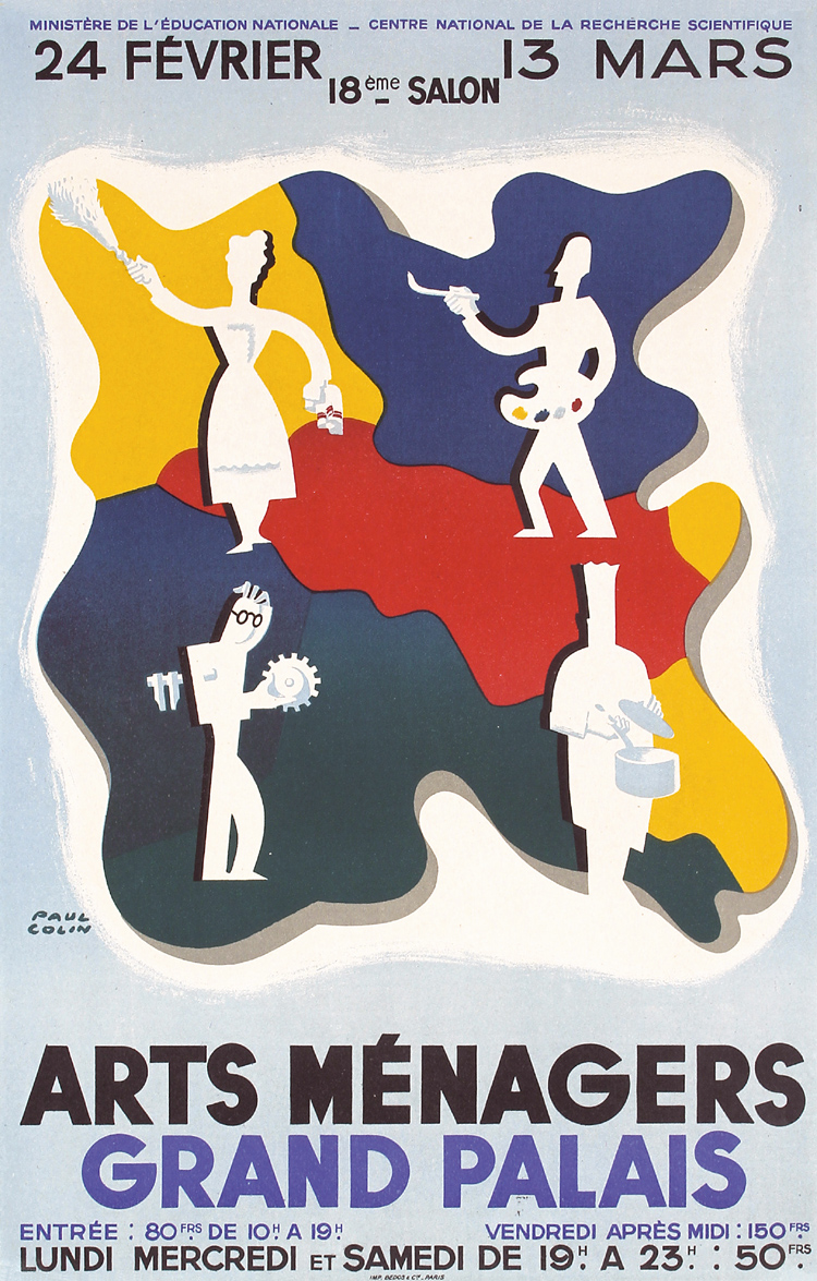 Paul Colin (1892 Nancy, France - 1985 Nogent-sur-Marne, France) was a prolific master illustrator of Decorative Art posters. A professional artist, scenographer, graphic designer and theatre painter. He specialised in theatre sets, book design and costume design. During his lifetime he created over 1900 posters and worked in theatre for more than 40 years. He was influenced by Surrealism and Cubism, typically using very exaggerated shapes, striking colours and stylised art forms in his work. He used a large palette of colours to emphasise the energy and meaning conveyed by his subjects, and his art is strongly in the style of the Art Deco movement. Many of his most famous illustrations were created for Jazz Age music and theatre. His designs incorporate jazz elements, highly stylised or caricaturised humanoids are strangely juxtaposed with geometrically overlapping objects such as Cubist collages. His own background in painting and his love of theatre helped him to become one of the most important French poster artists of the 1920s and 1930s.